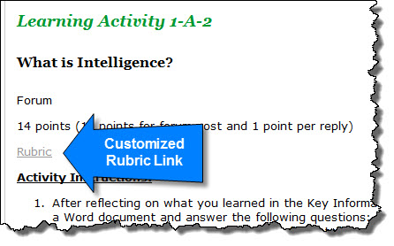 Customized rubrics will contain a link to the rubric directly in the activity as seen below.